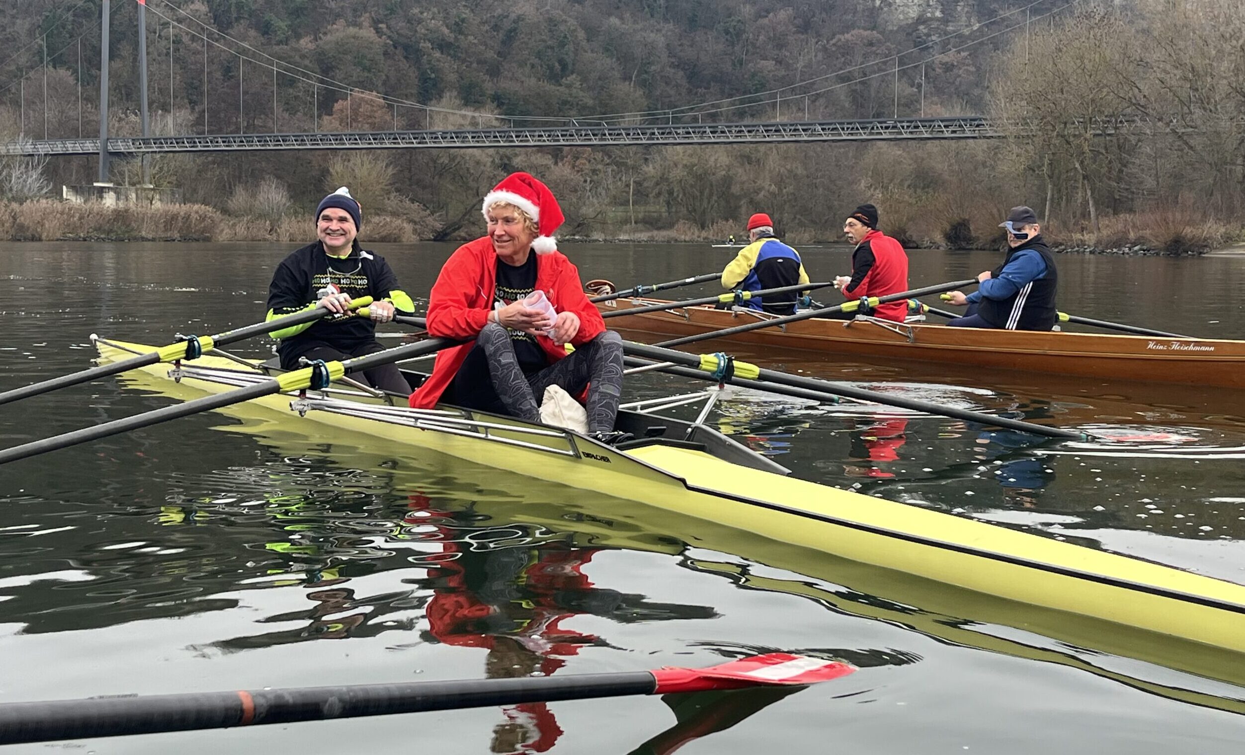 Passenderweise fiel die diesjährige Plätzlesfahrt auf Nikolaus, 6. Dezember. Bei einigermaßen milden Temperaturen waren drei Gigboote und ein Renneiner Richtung Himmelstadt auf Wasser, um dort Plätzchen und Ruderpunsch durchzureichen. Beim anschließenden Beisammensein im Bootshaus stieg die Beteiligung merklich an. (Foto Karlheinz Haase)